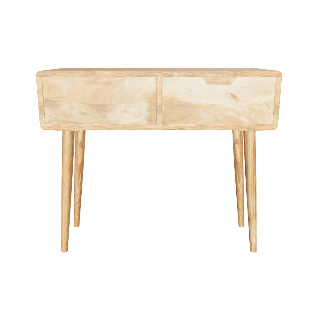Bring natural style into your hallway or living space with the Santa Maria Console Table. Made from solid mango wood, this slimline console includes two spacious drawers with carved recessed handles, keeping your essentials neatly stored away.